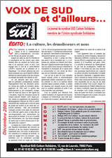 Signalons la mise en ligne du journal VOIX DU SUD de décembre 2009, émanant du syndicat SUD Culture. Ce numéro traite, sur plusieurs articles, de la précarité dans les domaines de la culture, revenant, notamment, sur la situation des salariés des monuments nationaux.