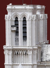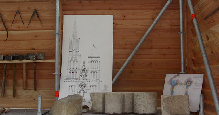 Pourtant, les porteurs du projet possédaient des arguments. Si le démontage date, il est particulièrement bien documenté, réduisant la marge de réinterprétation. « Plus de cent planches illustrées, complétées de nombreuses notes techniques, font de cette tour et de sa flèche un des ouvrages les mieux renseignés en France », plaida Jacques Moulin qui, en outre, fit remarquer que l’emplacement, depuis, était resté vierge de toute « disposition nouvelle » [6]. L’on dispose, par ailleurs, de plus de 300 pierres d’origine (du 12e au 19e siècle au gré des restaurations) qui, si elles ne seront pas réutilisées contrairement à ce qui avait pu être dit au départ, pourront servir de gabarits et fournir de précieuses informations sur le mode de construction : nature de la roche, traces d’outils utilisés comme l’a montré le tailleur de pierre lors de notre visite [7]. Cependant, le représentant de la Direction Régionale des Affaires Culturelles (DRAC) d’Ile-de-France tenait à ce que l’on soit précis : « Il convient, au regard du faible nombre de pierres d’origine disponibles, de parler, non de la reconstruction de la flèche, mais de la reconstruction d’une flèche ».