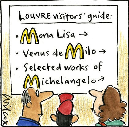 Plus glauque, il semble bien que le DAILY TELEGRAPH ait été mis sur la piste du McDo Louvre par Mario Resca, le très controversé super manager des musées italiens, nommé à ce poste par le gouvernement Berlusconi, ancien numéro 2 de McDonald’s Italie. Le 3 octobre, le journal anglais lui consacrait un article où la vulgarité du personnage s’étalait dans toute sa crudité. Celui-ci déclarait notamment : « I see visitors as customers, clients. When you come to one of my museums, you are a guest and your needs should be satisfied. I want double-digit growth in visitor numbers ». L’homme qui veut livrer Herculanum à des soirées privées ne manque pas de projets pour faire de l’argent avec les trésors historiques italiens. Avec pour modèle... le musée du Louvre ! « You go to the Louvre and you find Mona Lisa T-shirts, Mona Lisa fridge magnets, Mona Lisa spoons. And the Mona Lisa is Italian ! The French do marketing much better than us » indique-t-il. Puis, rajoutant platement, encouragement suprême à sa politique culturelle business, que « Paris has given permission for a McDonald’s to open up inside the Louvre ». Le personnage a au moins le mérite de la franchise. Nos grands directeurs de musées français, sous leurs airs de grands princes érudits, valent-ils mieux ? Pas sûr.