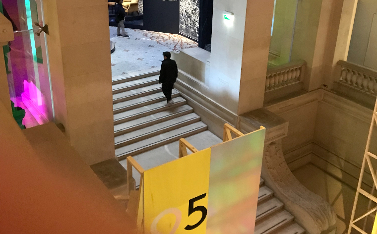 Ne vous méprenez pas, l’entrée de l’exposition ne correspond pas... à son début ! Quand on arrive, on est naturellement happé par la scénographie spectaculaire dans la nef, espace le plus grandiose du musée, alors que « la partie disons sérieuse de l’exposition » dixit Le Parisien, est reléguée dans les étages. Pourtant, c’est bien là qu’elle commence : au second puis au troisième étage, avant de descendre au rez-de-chaussée, dans la nef, où, en réalité, elle se termine.