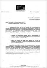 "L’inventaire du patrimoine mobilier reste incomplet - La plupart des biens qui meublent les bureaux et les résidences de la Présidence appartiennent au Mobilier National. Ils ont fait l’objet d’un récolement au moment de votre installation. La Cour n’a pas pu avoir communication des résultats complets du travail entrepris dans la mesure où le Mobilier national n’a pas encore effectué le récolement de ses propres stocks.