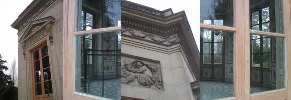 Le Pavillon français - Le Pavillon Français, datant de Louis XV, est tout aussi accessible et visible en basse et haute saison, à la différence près qu’en haute saison, la première année, une porte ouverte permettait de s’avancer sur le seuil, arrêté par une rambarde, pour mieux admirer sa décoration intérieure. En 2011, ce n’est plus le cas. La seule possibilité, c’est de jeter un oeil à travers les vitres, quand les volets en sont pas fermés.